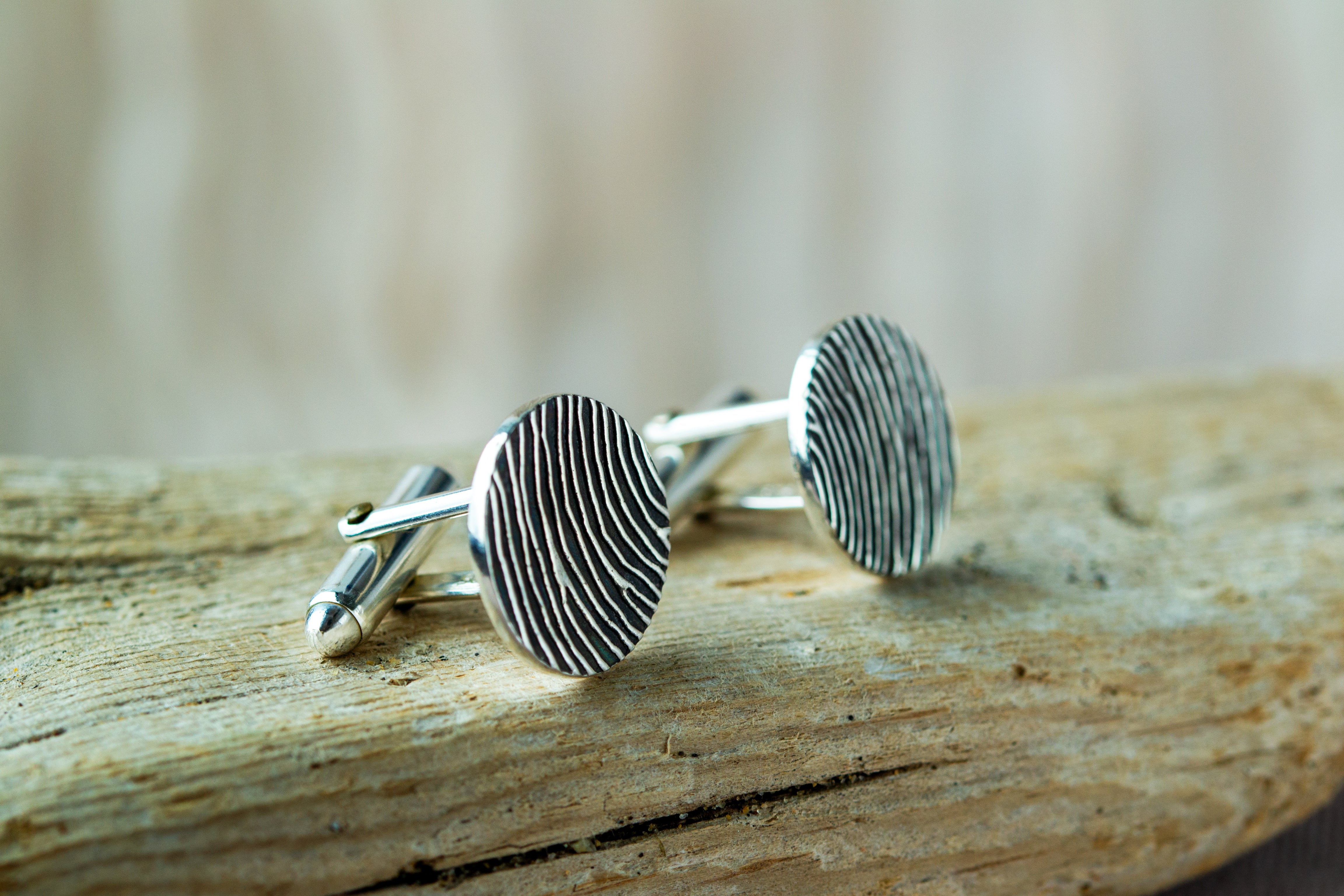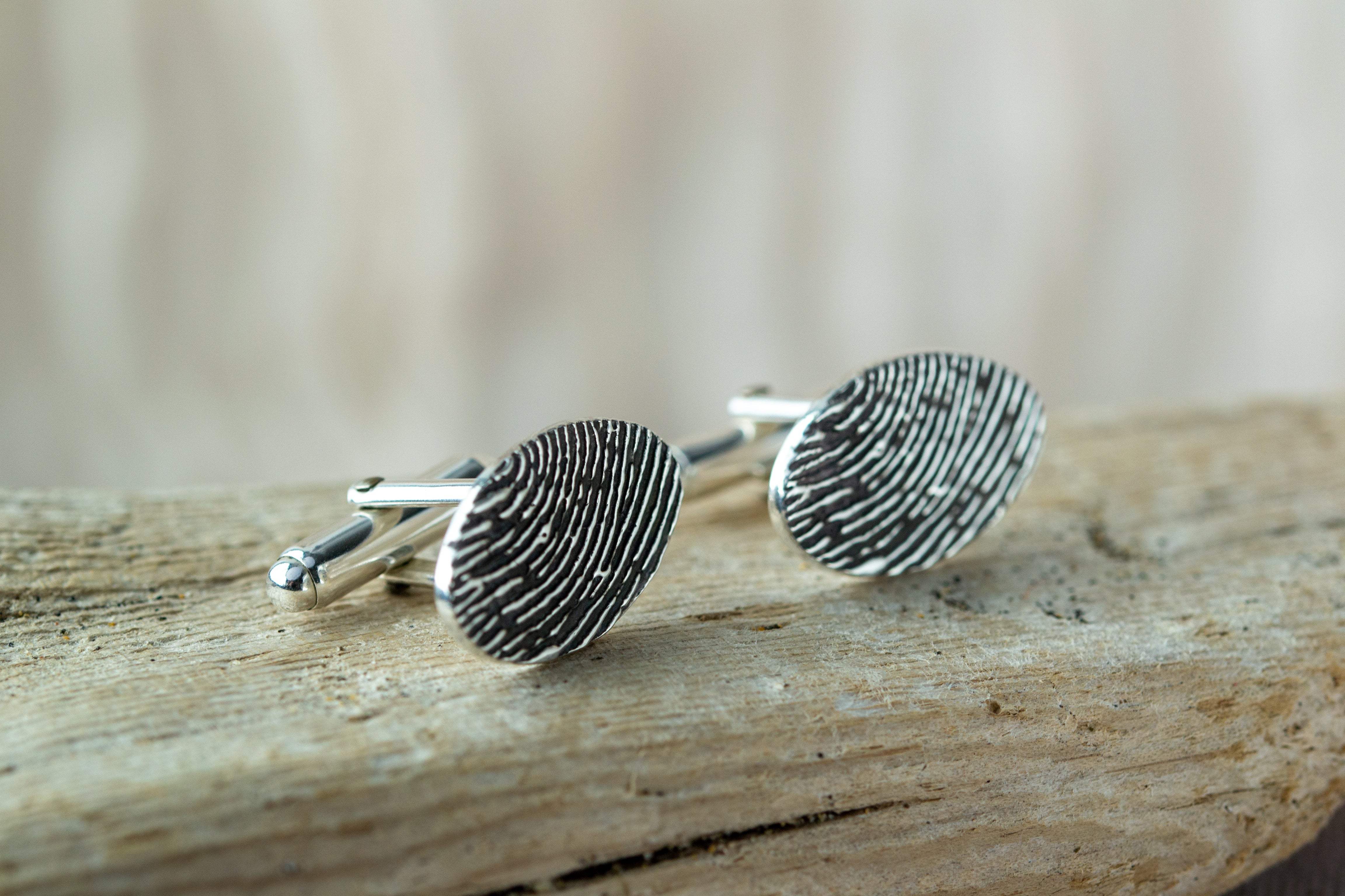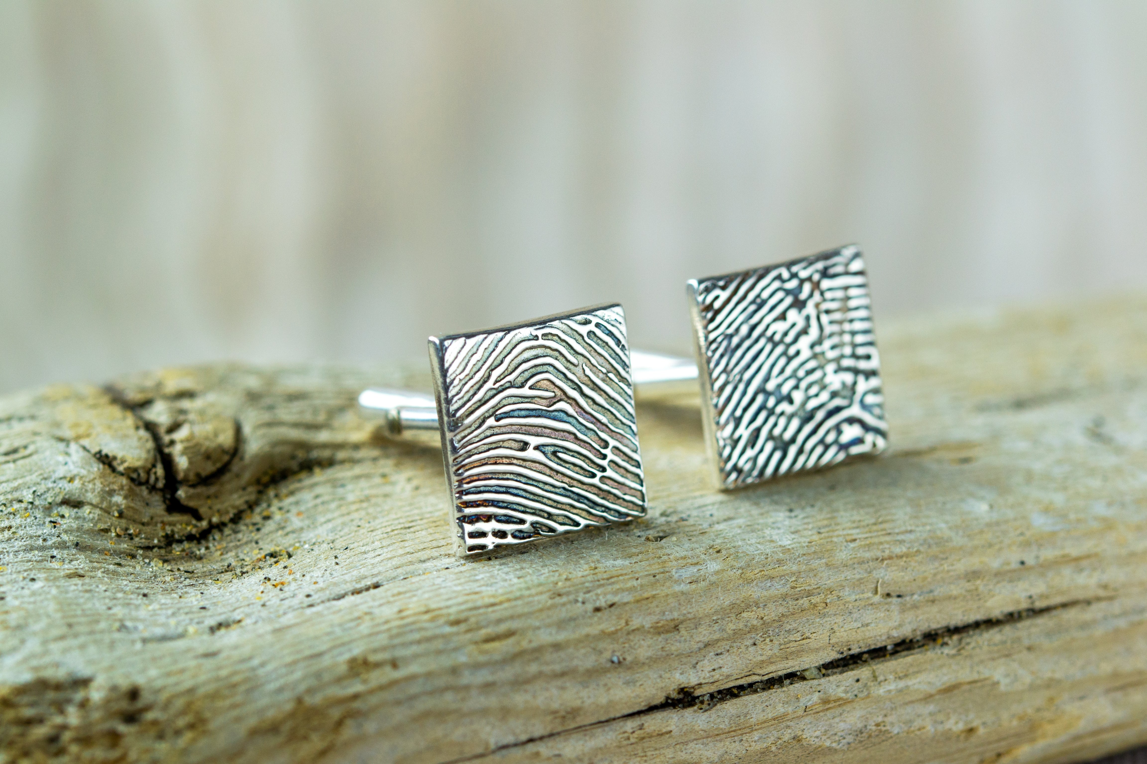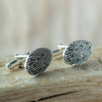 Elevate your style with our sterling silver cufflinks, featuring a textured fingerprint on the front and personalised engraving on the back. Perfect for preserving your child’s print or keeping a loved one close, these cufflinks make a meaningful gift for any occasion. Simply upload an existing ink print with your order, or request one of our ink print kits to send us your print later. Ideal for Father's Day, Christmas, birthdays, or any special moment, these cufflinks are the perfect gift for him!