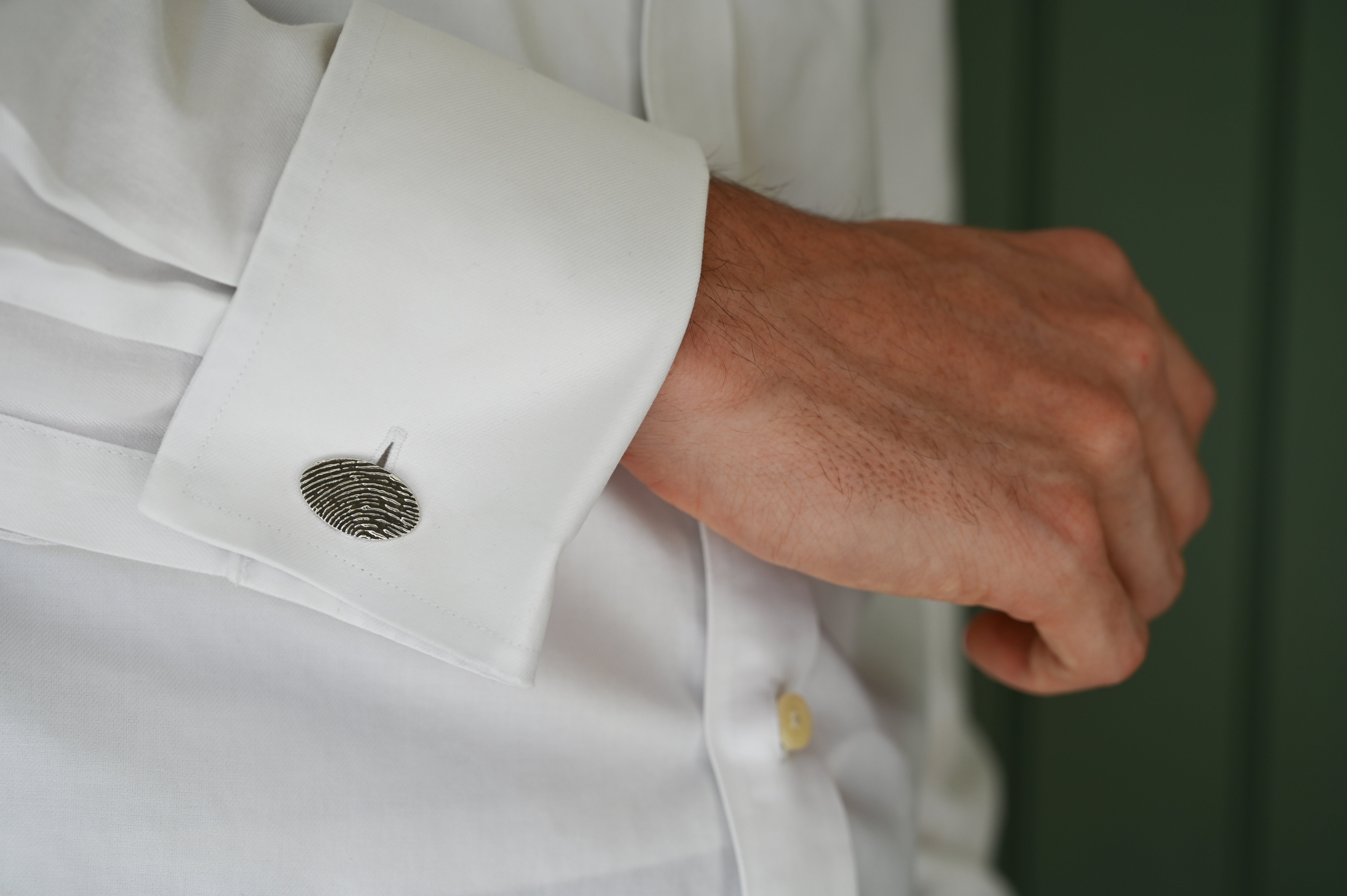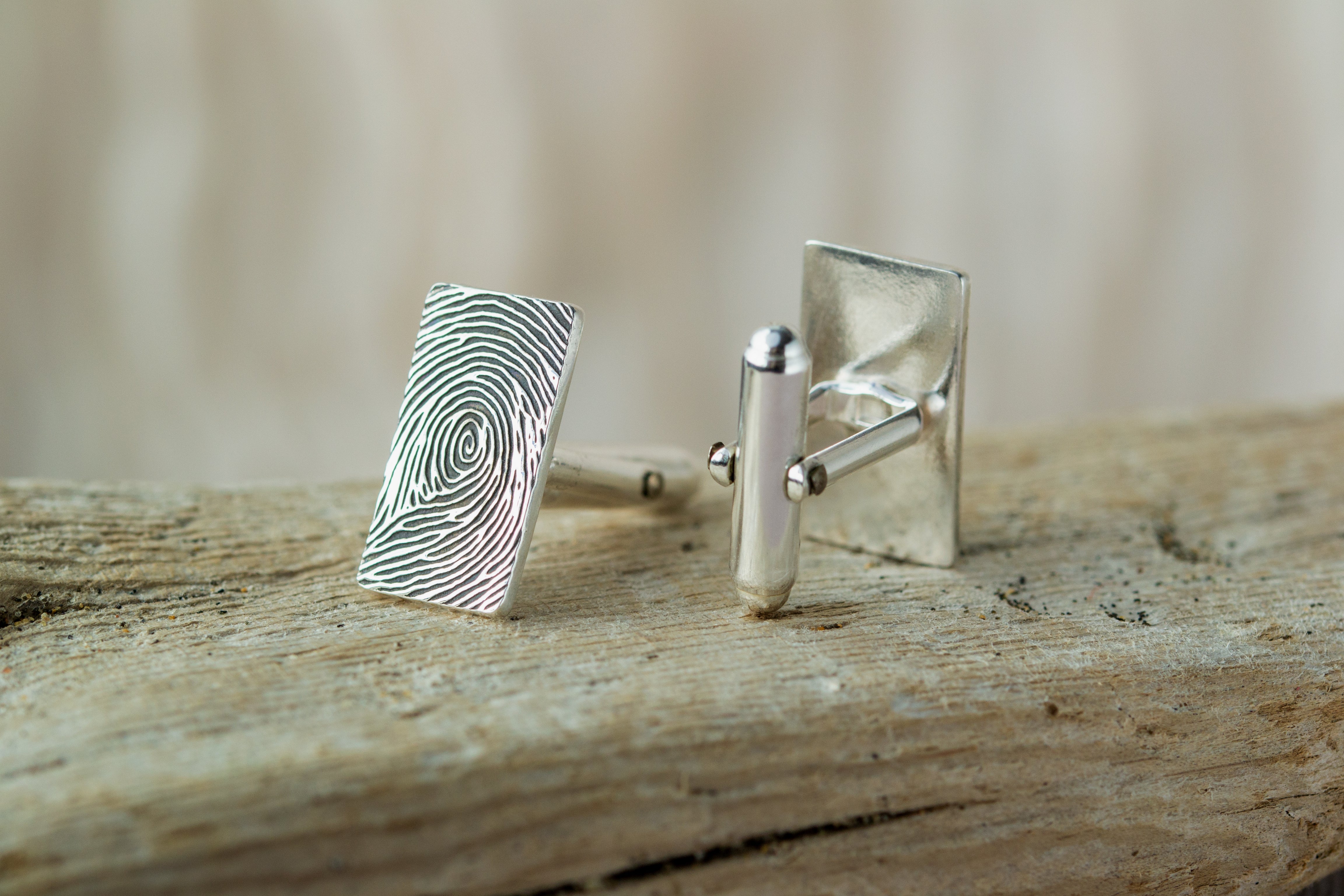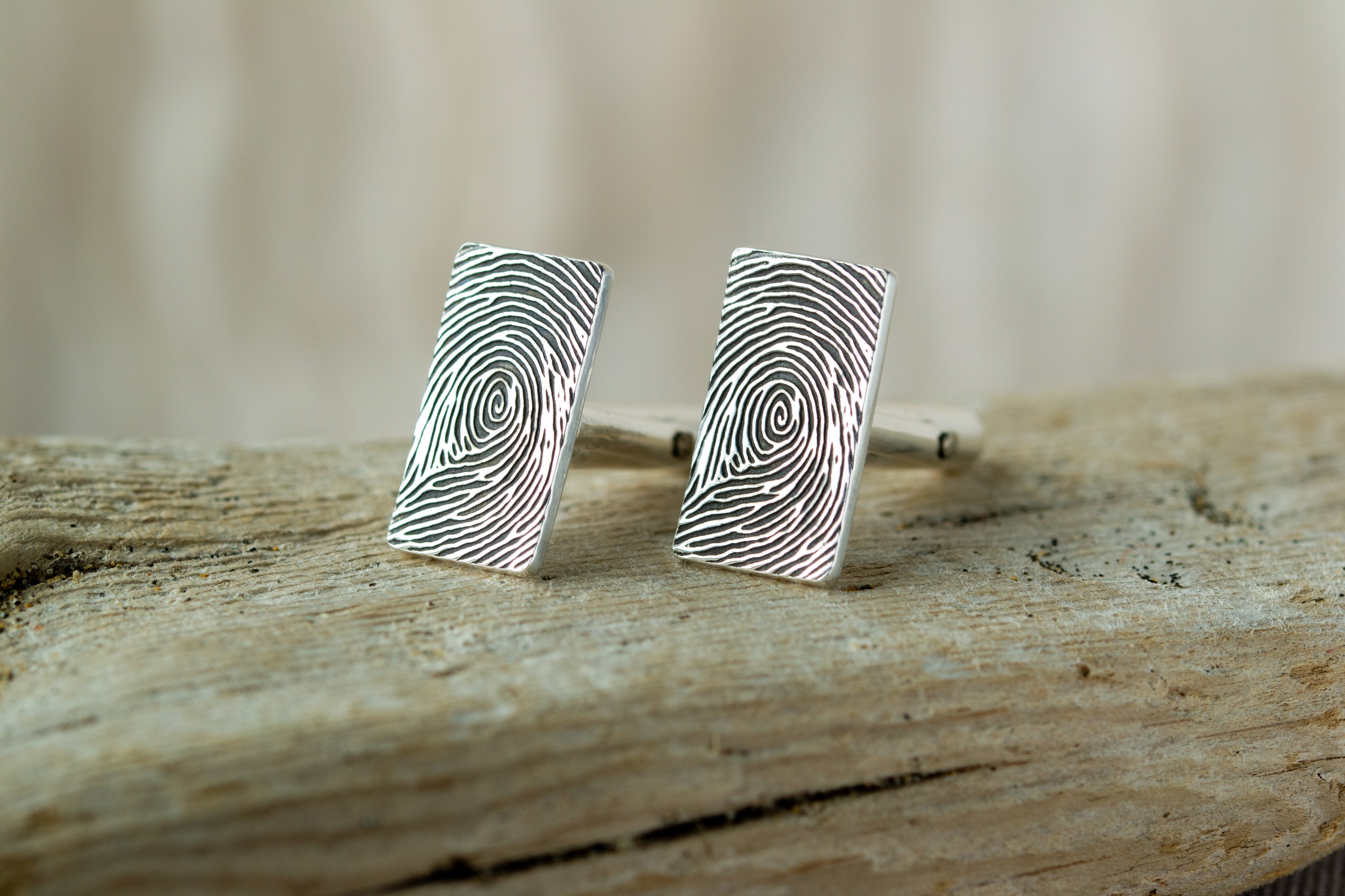 Elevate your style with our sterling silver cufflinks, featuring a textured fingerprint on the front and personalised engraving on the back. Perfect for preserving your child’s print or keeping a loved one close, these cufflinks make a meaningful gift for any occasion. Simply upload an existing ink print with your order, or request one of our ink print kits to send us your print later. Ideal for Father's Day, Christmas, birthdays, or any special moment, these cufflinks are the perfect gift for him!