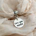 The perfect addition to your Pandora bracelet! Our simple sterling silver charm features custom handwriting jewellery, capturing an original handwritten name or phrase on one side, with a name and age engraved on the reverse. Each charm is handmade and comes with a sterling silver carrier that is fully compatible with Pandora bracelets. To personalise your charm, simply take a clear picture of the handwriting and upload it with your order. Choose from a variety of charm shapes, and your finished handwriting jewellery will arrive beautifully packaged, complete with a polishing cloth and care advice.