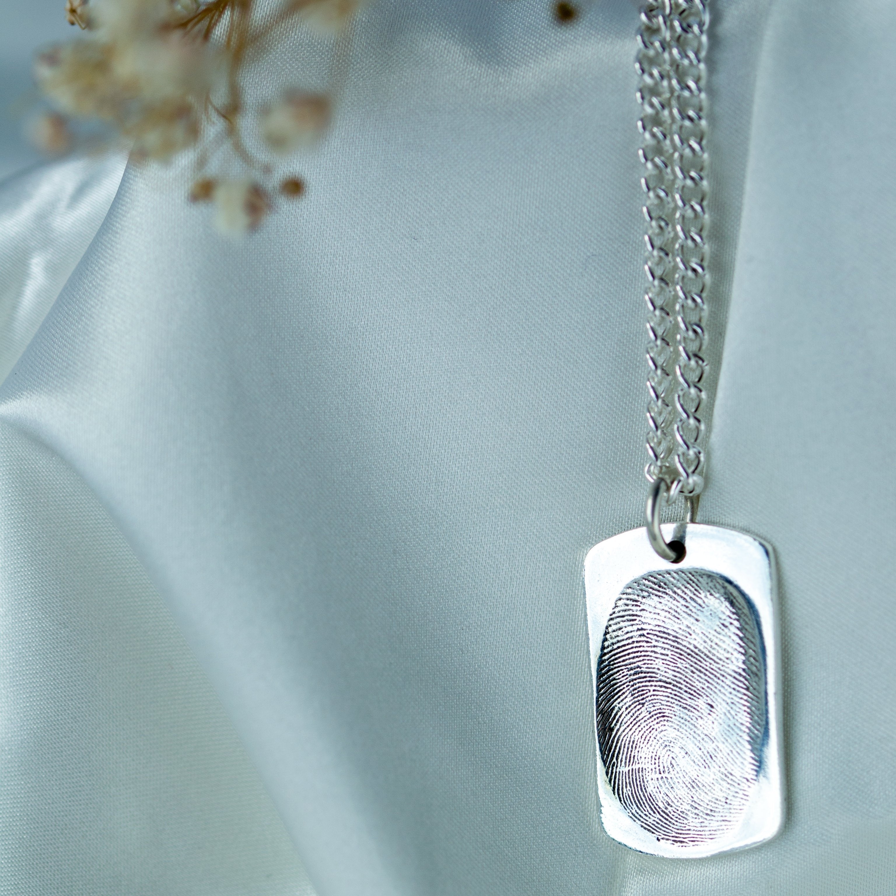 Prefer a longer, elegant chain to showcase your unique memorial fingerprint jewellery? Capture a loved one’s actual fingerprint in sterling silver, creating a deeply personal keepsake. Have the impression done by a local jeweller or use our moulding kit to create the perfect pendant. Choose from various shapes, with a hand-engraved name and age included. Complete your piece with one of our Italian-made, slinky sterling silver curb chains, available in two sizes.