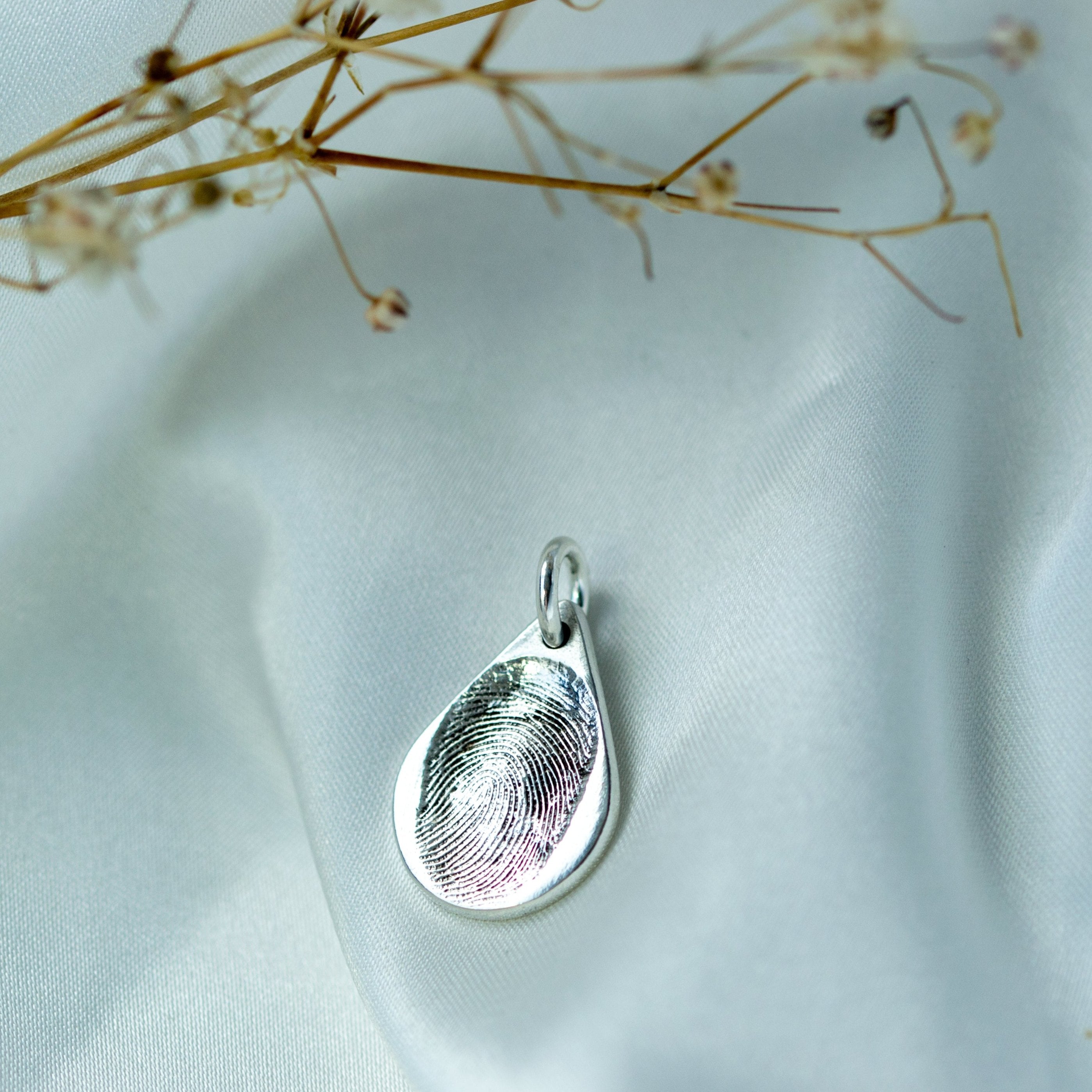 Capture precious memories with our timeless memorial fingerprint jewellery, handcrafted in sterling silver. Ideal for honoring loved ones of all ages, this personalised piece can be created by visiting a local jeweller or using our moulding kit. Choose from various pendant shapes, each with a sterling silver jump ring for easy attachment to any necklace. Our dog tag design serves as a heartfelt keepsake. Plus, we offer complimentary engraving of a name and age, all included in the price.